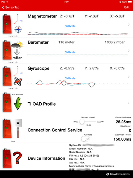 iOSアプリBASIC「TechSampler」では、SensorTagをサポートしています。