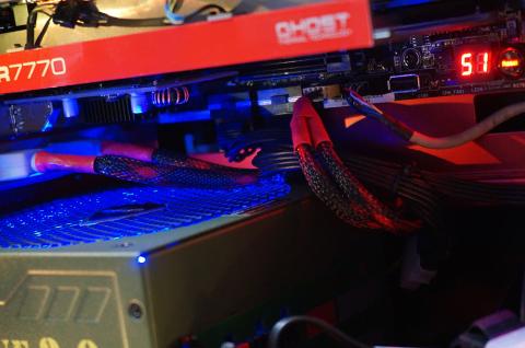 今まで無理やり裏配線ホールにUの字型に押し込んでましたが、この黒赤なら電源の上通しても目立ちません。赤がいいアクセントです。