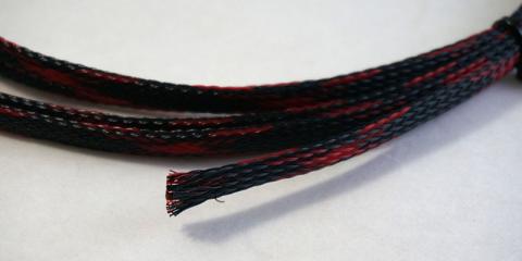 USBケーブル用のスリーブ。カラーはレッド&ブラックの「X-VISION」。