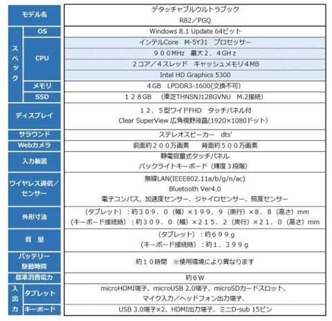 デジタイザーペン付属のノングレアー液晶モデル『dynabook R82/PGP』のSSDは256GB
