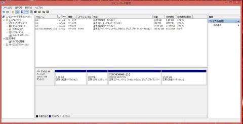 リカバリー領域などのあるメーカー製パソコンになるので、実際に使える容量としては100GB程度になります。