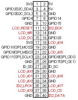 そこで、LCD、I2S、I2C、SPIがバッティングしないようなGPIOアサインに変えました。