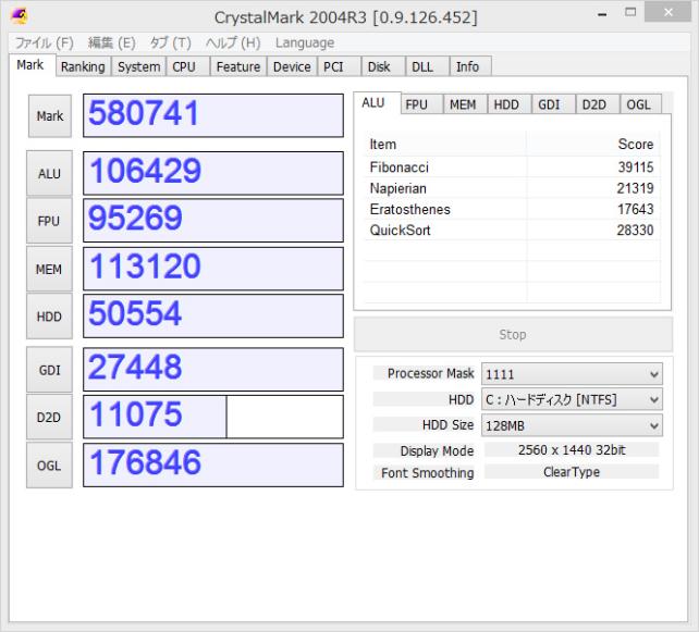 CrystalMark 2004R3を見てみると、ゲームパフォーマンスを向上させるDirect X関連のパフォーマンスは、GTX TITANに遠く及びませんが、Open GLの値は目を見張る(約3倍)ものです。