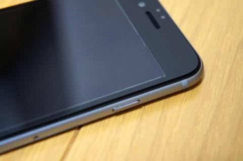 わかる方はすぐ気付くと思いますが、液晶パネル部分の四方に筋が入ってます。他社の似た製品と同じように、液晶パネル部分には接着剤は付いておらず、この製品でいうと黒いところだけに接着剤が付いてます。この事で、接着剤のあるところとないところで、どうしてもこのように筋ができてしまいます。