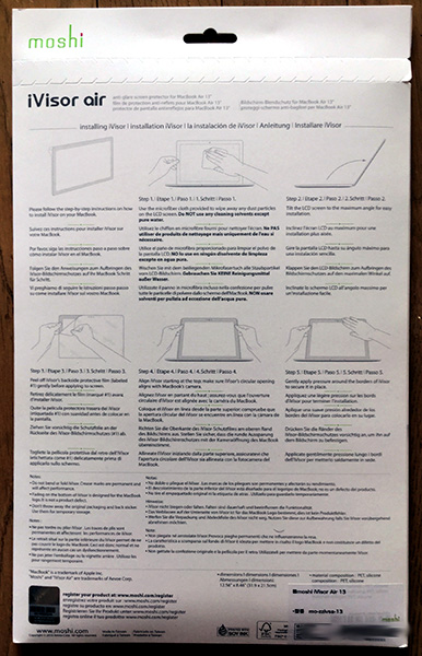 iVisor Airは、 moshiが独自に開発したテクノロジーを利用しAppleのMacBook Air用に設計された、100%気泡の入らないスクリーンプロテクターです。