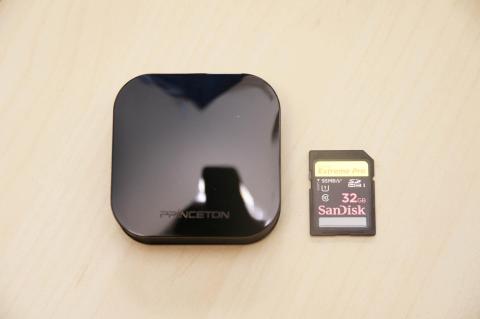 本体はとても小さく、SDカードと比べてこのくらいの大きさ、小さい!