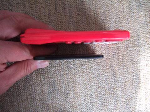 大きさ比較で下の写真を撮りましたが 一緒に写っているカード型の電卓より持った感じは、軽く感じます。