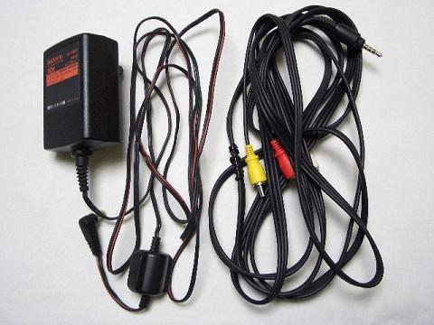 付属品は、左からACアダプタ、A/V OUTケーブル。リモコンが付いていてハズ