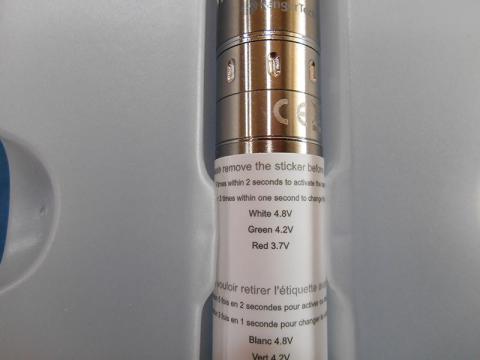 この機種は3.7v~4.8vの可変機能で出力を切り替えれるのですが、赤から順に緑、白と燃焼効率が高くミスト量(水蒸気の量)が増えます。