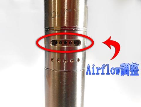 画像の部分のリングを回転する事で空気の流入量が全閉~全開まで5段階で調整が出来るので、女性の方とか細いタバコを吸っていた人などは穴を2つ位にして流入量を少なくして見るとか色々アレンジが出来るのもいいですね。