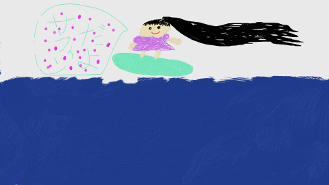 これも絵に説明がありますが、サーフィンをしている自分だそうです。