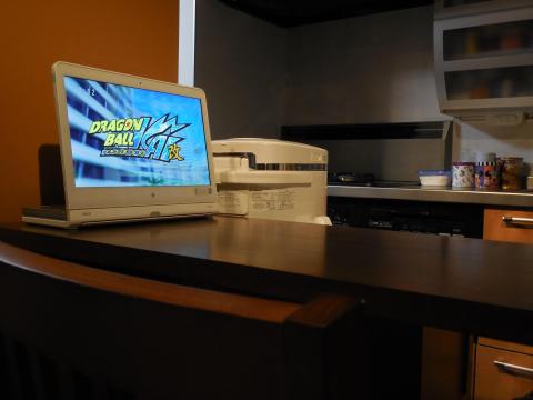 台所にLaVie Hybrid Fristaを置いて録画番組の視聴を行いました。短時間であれば、