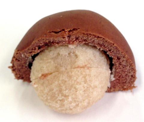 見た目は「薬玉」の様に見えますが、白餡をココア入りの生地で包んだ小さな「饅頭」です。