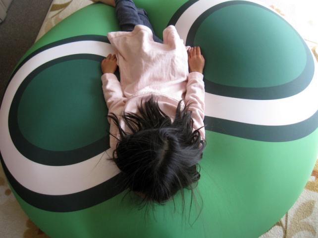 製品情報によると、「直径 約120cm/高さ 約60cm/重量 約12kg/中身:ビーズ」で、