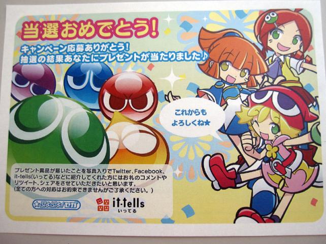ぷよの日2015キャンペーンで、it-tellsから応募したら、なんと当たってしまいました。
