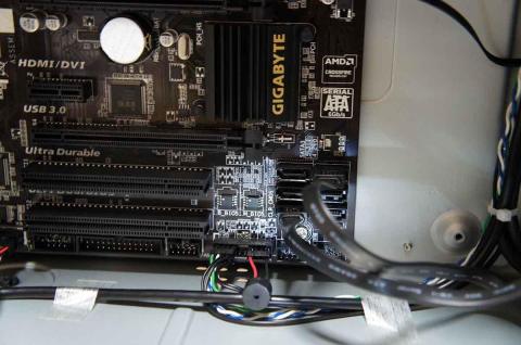 搭載されているマザーボードは、ギガバイトのGA-H97-HD3というモデルでした。CPUクーラーはリテールを使用。リアには1基のファンを搭載しています。