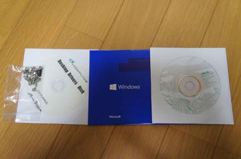 DSP版のWindows8.1の他、ドライバーディスクが2枚。また拡張時に使うネジも付属していました。