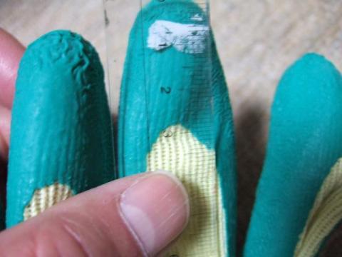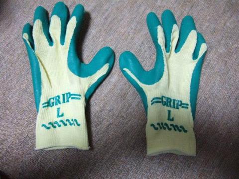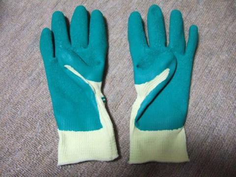 ラバーの色は、緑です。軍手は少し黄色が入った色となっています。