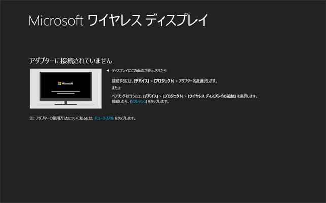未接続時に起動すると、ワイヤレスディスプレイアダプターに接続する方法が説明されます。