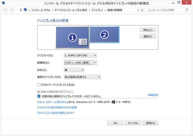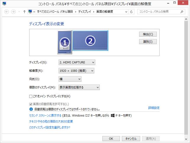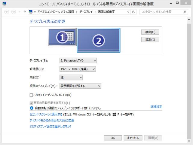 ディスプレイを拡張表示すると、セカンダリーのディスプレイは、1080pになります。