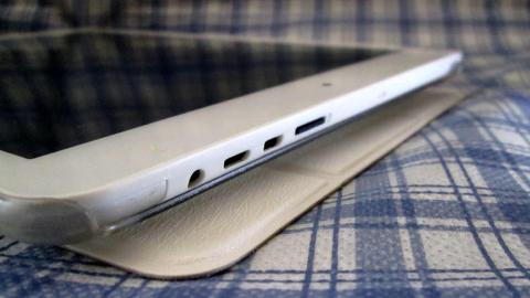 9.7インチタブレットなのでコネクタの配置が厳しく、変換アダプタを接続すると USB や microSDスロットに干渉してしまいますが、そういう運用をしなきゃいいだけなので気にしません(・з・)