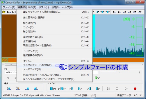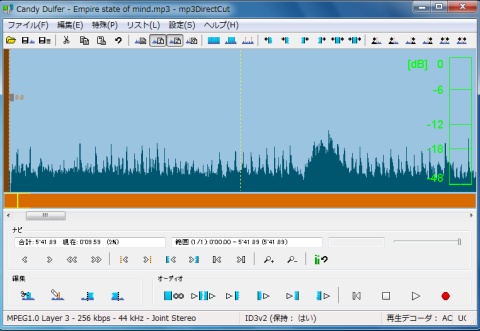 「mp3DirectCut」は、MP3ファイルをカット編集して