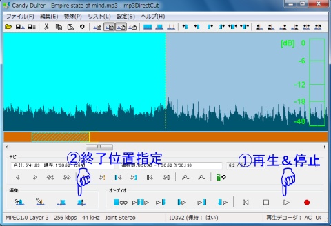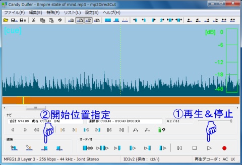 再生&停止ボタンで欲しい部分の頭出しを行い、
