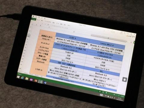CLIDE9、Lenovo Miix2 8ののカタログ数値比較をしてみます