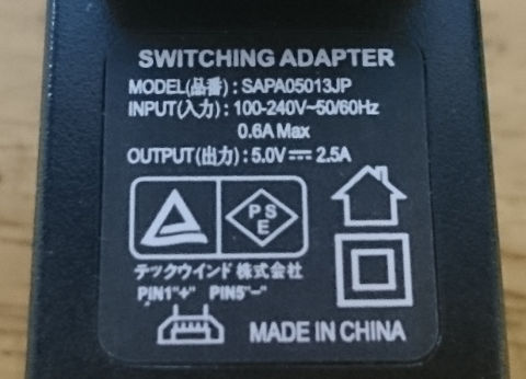 標準の給電【ACアダプター】能力は2.5Aとなっています。