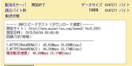 インターネット側の速度は
