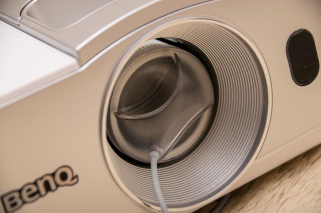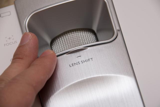 投影サイズやフォーカス等の調整は本体上面から覗かせているレンズのリングを回すことで調整できますが、その横にスライドカバーで隠されているレンズチルト機能が秀逸でした。