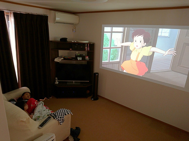 設置後、娘はもっぱらプロジェクターで映画を観たり、好きなアニメを観たりして楽しんでくれています。この設置より少し前から映画館にも通い始めていたので、「大画面で観ることの臨場感や迫力」を知っていただけにプロジェクターの導入は娘にとっては嬉しかった様子。