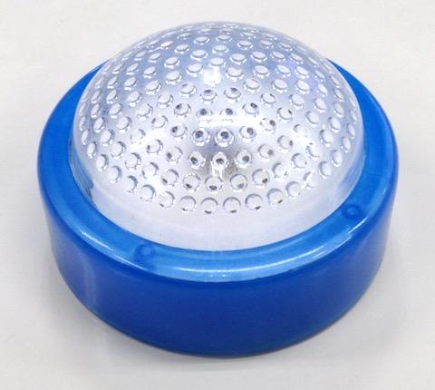 本製品には大と小のサイズと数種類のカラーバリエーションがあります。発光部分の透明樹脂は電源スイッチと兼用になっており、内側に水玉のような小さい半球状のレンズか並んでいるので見た目にはちょうどゴルフボールのような感じに見えます。