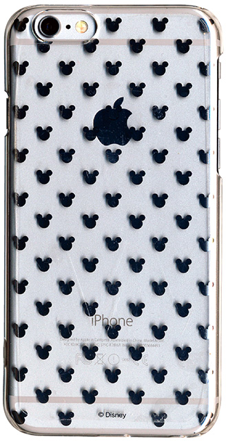 透明ポリカーボネート製で、内側からミッキーデザインの銀箔押しが施してあります。
