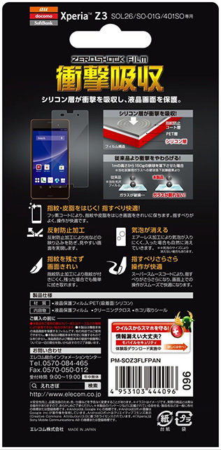 先日、娘にXperia Z3を買わされたのですが、そのスマホ用フィルムです。