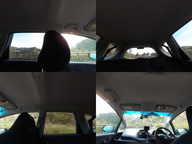 車内の中央付近に取り付ける事により、前後左右の窓から見える風景が撮影出来ます。