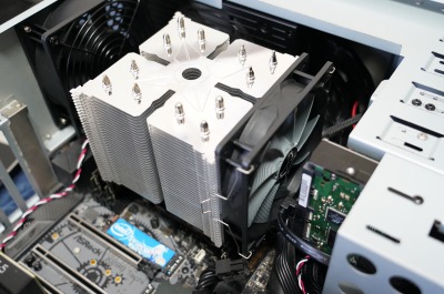 ただ、横幅が狭いケースで背の高いハイエンドクーラーは入らず背が低いながらもよく冷えるクーラーを検討したところこの忍者四と後継の忍者五がニーズにベストマッチ。