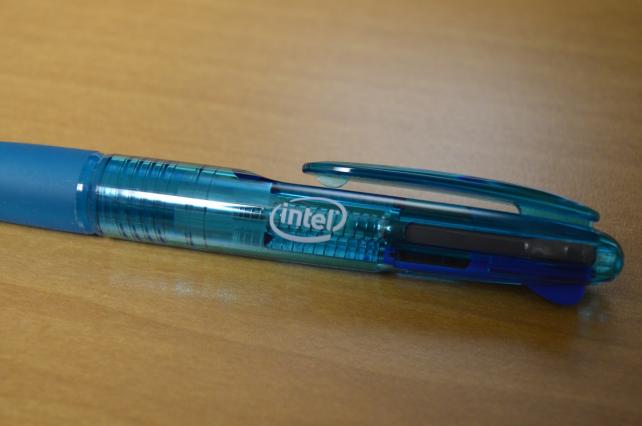 ノベルティーだとインクがちょっとしか入ってなくて結局使えない事が多いんですが、インクがちゃんと入っていて実用性があるのはさすがIntel!