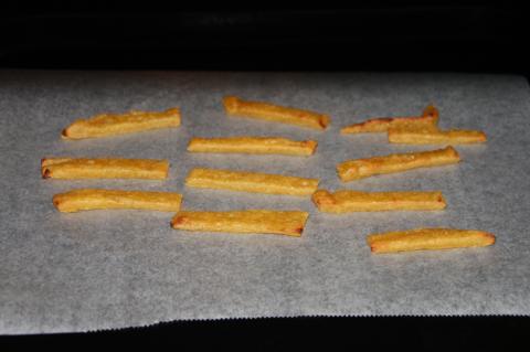 細く切って、オーブン(またはトースター)で4分くらい、焼きます。