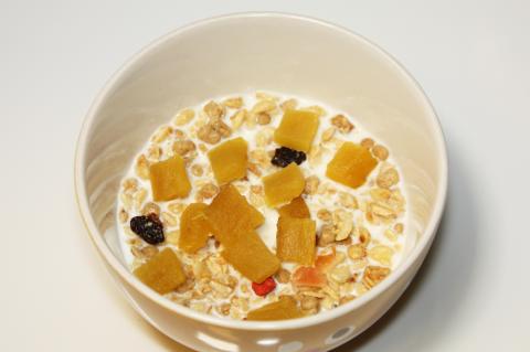 ブロック状に切って、フルーツグラノーラ(シリアル)に混ぜてみました。