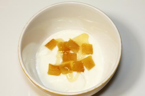 酸っぱいヨーグルトが、星いもとハチミツで甘くなって美味しいです。