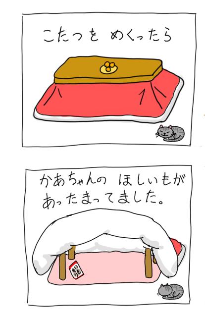 小学生の頃、学校から帰ってきて こたつに入ると、なにやらカサカサと音が...