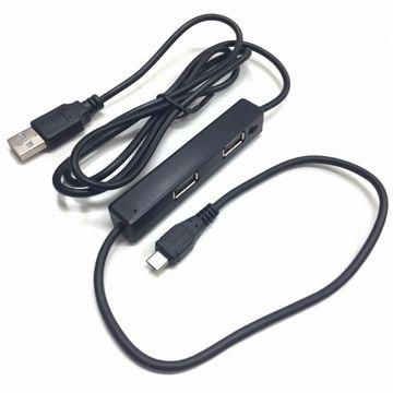給電用のUSBケーブルの付いた、micro USB端子の付いた4ポートUSB HUBです。