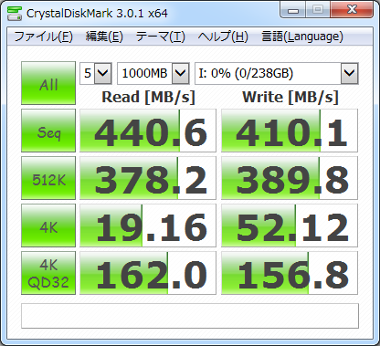 はい。この時点で計測する意味ねえ・・・と思いました。USB3.0の上限にも届いてない。