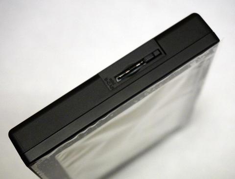 反対側面には、mini B-CASカード挿入口があり、飛び出し防止用のスライド蓋が端に付いています。