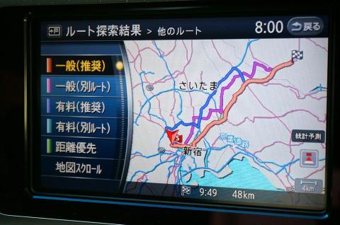 ちなみに大きい車のナビでは、推奨以外に別ルートも示してくれます。
