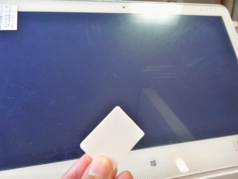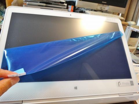 2.後ろのシートをはがし、液晶ディスプレイに貼る。