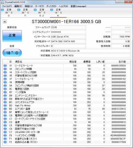 中に入っているHDDはSeagate製ST3000DM001-1ER166です。