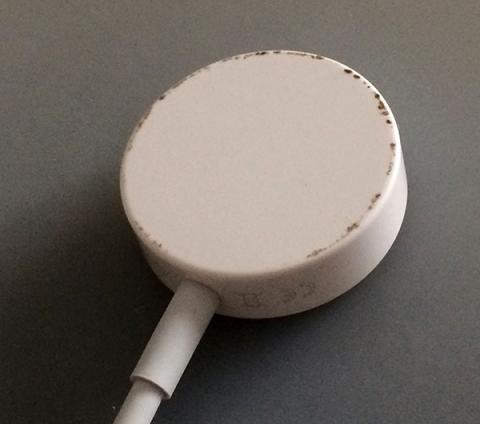 2.ホワイトなマグネット式充電ケーブルが傷だらけに