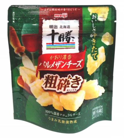 明治 「北海道十勝かおり濃香パルメザンチーズ粗砕き 」です。